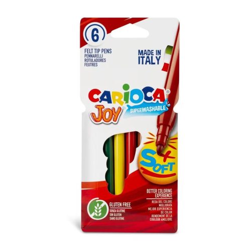Carioca 6-os filctoll készlet.Élénk színek, könnyen kimosható a legtöbb textiliából, mérgező anyagokat nem tartalmaz.