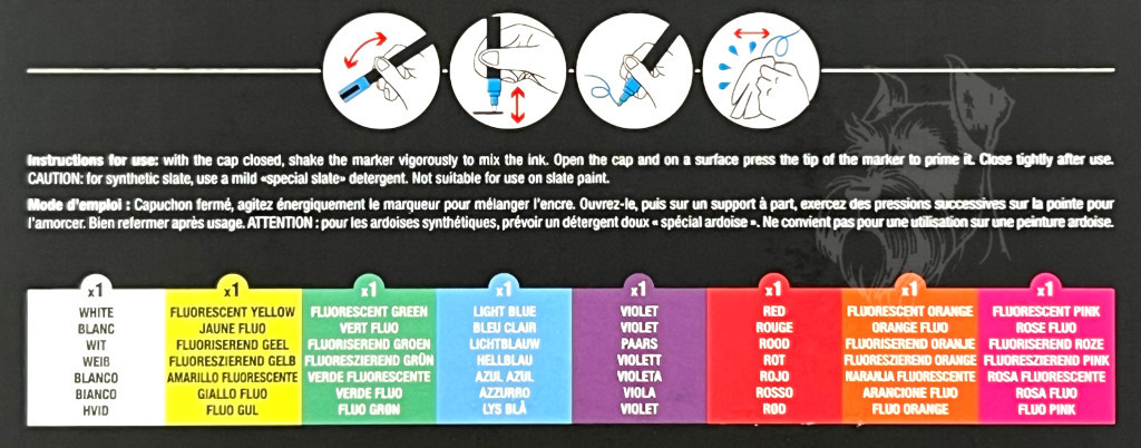 Vízbázisú krétamarker PWE-5M, száradás után vízálló, de nedves törlőkendővel könnyen eltávolítható. Üvegen, tükrön, fémen, műanyagon, sima, nem porózus felületeken, világító táblán is alkalmazható. Vizes törlőkendővel eltávolítható.