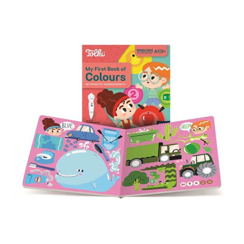 A My First Book of Colours Tolki hangoskönyv játékos módon segít a gyerekeknek megismerkedni az angol nyelv alapjaival. A Tolki elektronikus tollal működő interaktív könyvben a kicsik hallás után tanulhatják meg az angol szavakat, miközben vidám feladatokkal és kvízjátékokkal gyakorolhatják az új ismereteket.