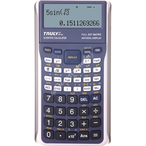 - tudományos számológép - 249 funkcióval - gombelemmel működik - 10+2 digites, kétsoros, dönthető kijelző - tört- és statiszikai számítás - csúsztatható, műanyag fedél, műanyag gombok - 7 variálható memória - automata kikapcsolás