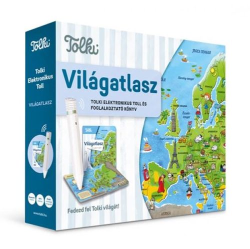 A 2.0 Tolki toll működése ugyanolyan, mint a korábbi Tolki tollé, az egyetlen különbség az, hogy ehhez már Bluetooth fülhallgató is csatlakoztatható a vezetékes mellett. A Világatlasz komoly tudásanyagot tartalmaz. A nyolc oldalpár az alábbi bontásban mutatja be Földünket: Világtérkép (kontinensek, tengerek, óceánok), Európa, Észak-Amerika, Ázsia, Afrika, Dél-Amerika, Ausztrália és Óceánia, Magyarország. A Világatlasz olyan könyv, ami újra és újra elő fog kerülni, hiszen a hozzá tartozó tananyagot nem első hallásra megjegyezni. A Világatlaszban lévő térképek böngészése szórakoztató, a tanulás tempóját pedig egyéni igényeink szerint szabályozhatjuk a toll használatával. A magyar kiadásban hazánk önálló oldalpáron, sok-sok érdekes tudnivalóval szerepel. A könyv narrátora Csuha Bori.